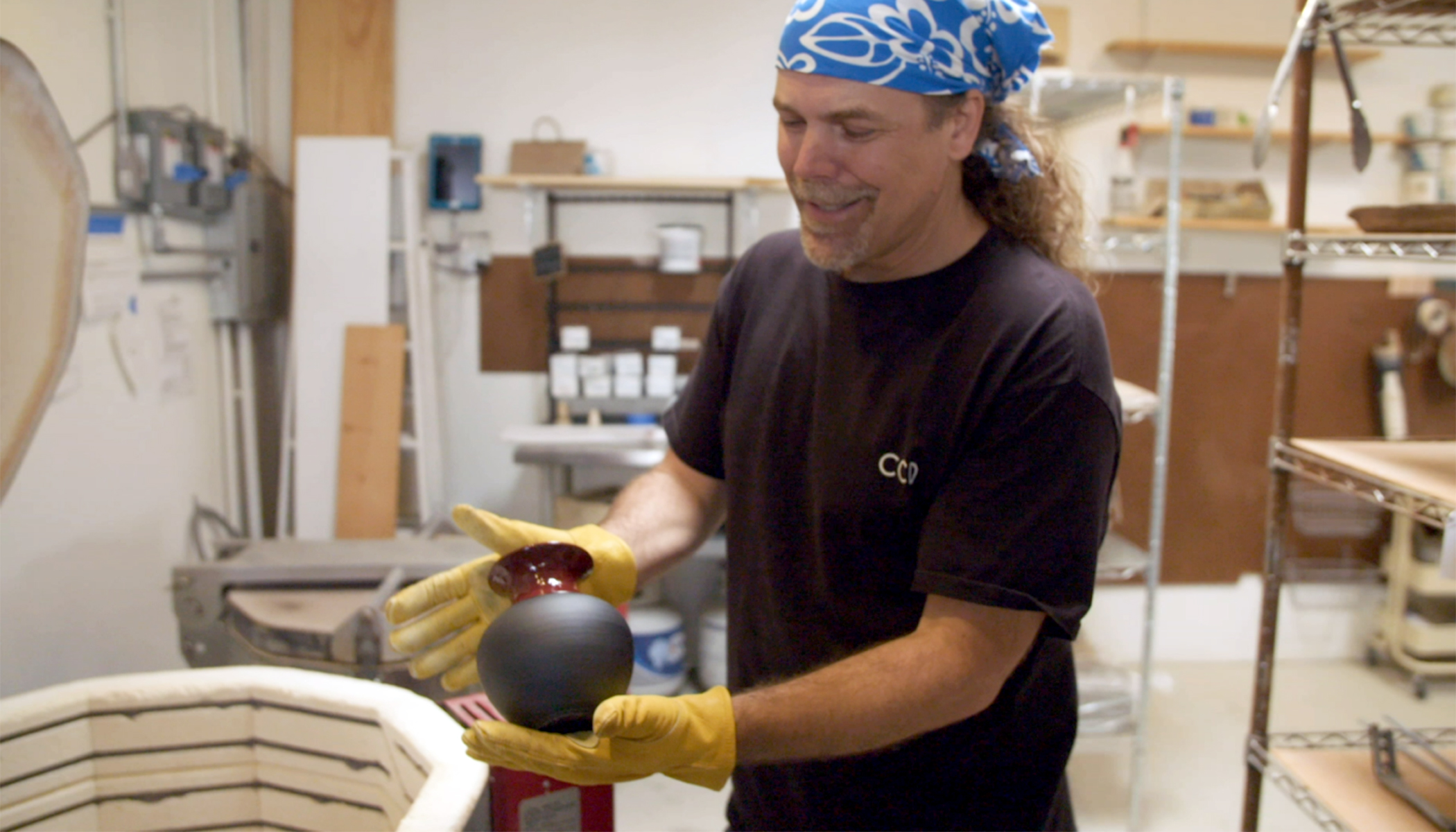 Showing us more of his pottery, Brett continues to talk about his methods, and it’s easy to see the scientific influence at work in his ceramic approach. “I have a standard operating procedure. You learn the foundations of working with clay and then the fun and creativity is tweaking them and breaking them,” he explains. “Every once in a while, some new technique works really well, so I’ll spend the next two or three years exploring that and digging deeper into it.” Brett tracks his artistic failures and successes in a journal, much as he does his lab work, with orderly notation throughout. “Wedging the clay, preparing it for the wheel, centering it, opening it, lifting it, shaping it, every step requires the one before it being done right,” Brett explains. “This is where science and art synergize.”