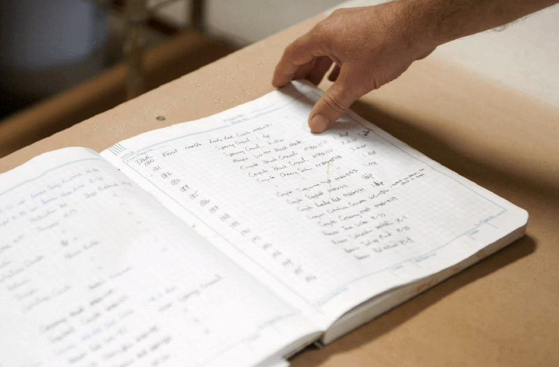 Figure 2 In this lab journal, Brett tracks the combinations of clay and glaze used in his experiments